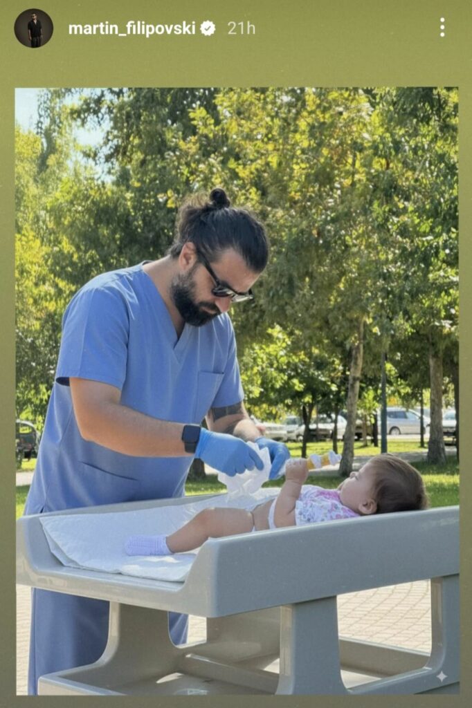 На сликата која ја објави Мартин на Инстаграм, тој ѝ менува пелена на својата ќерка, и се гледа колку е среќен и посветен татко.