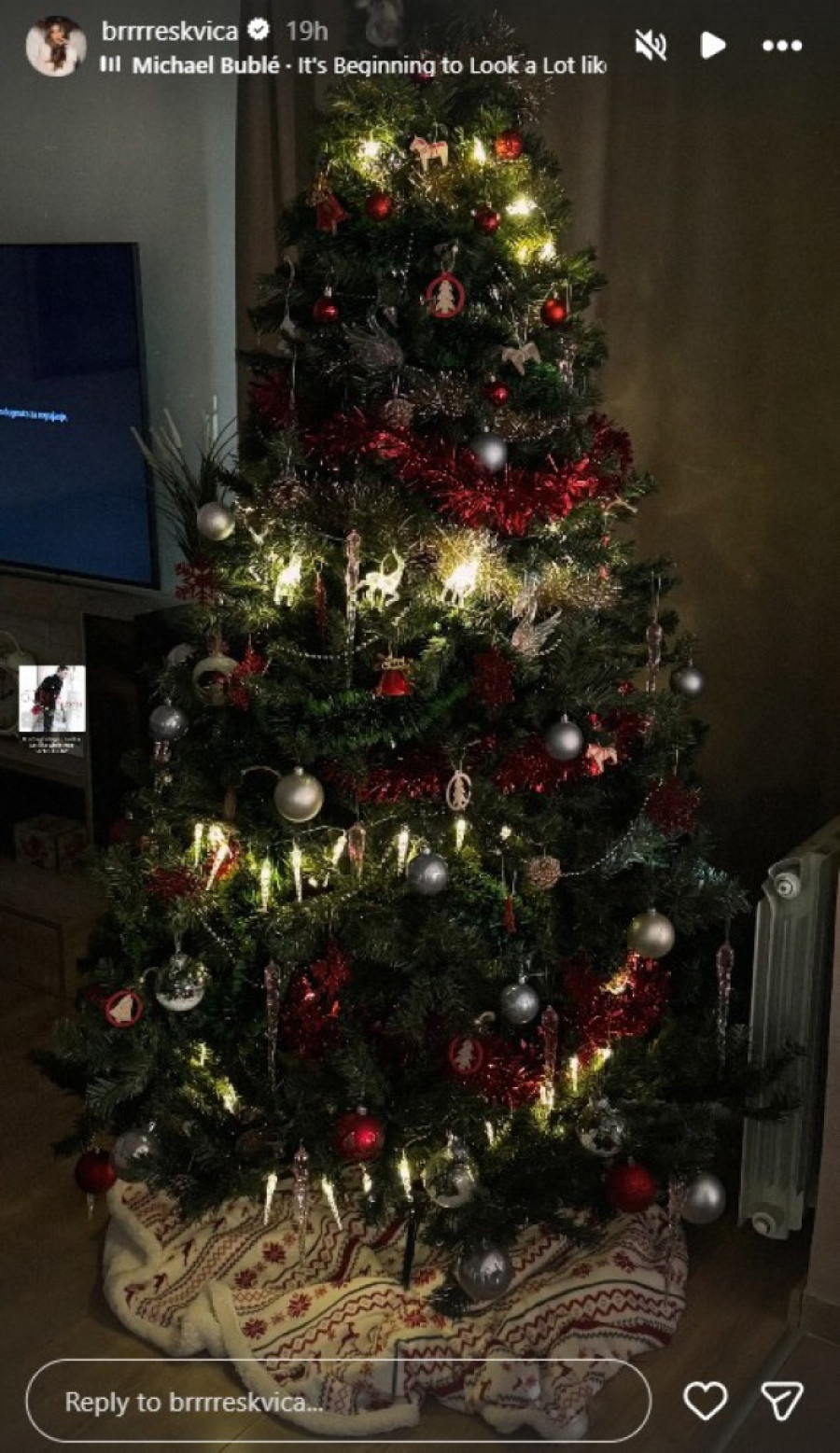 „Сериозна расправија околу елката“, напиша таа со насмеани емотикони.