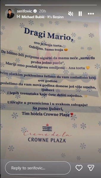 – Драг Марио, ова е твојата торта. Сериозно. Само твојата. За да бидеме сигурни дека мама нема „само да проба едно парче“, ѝ ја испративме на Марија нејзината омилена торта. Сакаме да го засладиме крајот на оваа година со овие слатки подароци. Сакаме новата година да ви донесе уште повеќе смеа, љубов и убави моменти што ќе ги споделите заедно – се вели во пораката, а гордата мајка се пофали на мрежите.