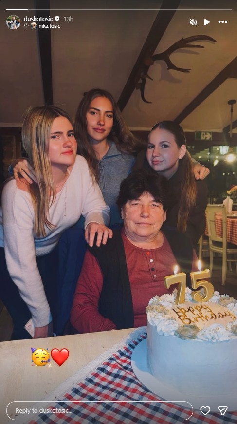 Ника сподели фотографија на Инстаграм со своите сестри и баба, додека пред Николета стоеше торта со свеќи во форма на бројот 75 и натпис „Среќен роденден“.