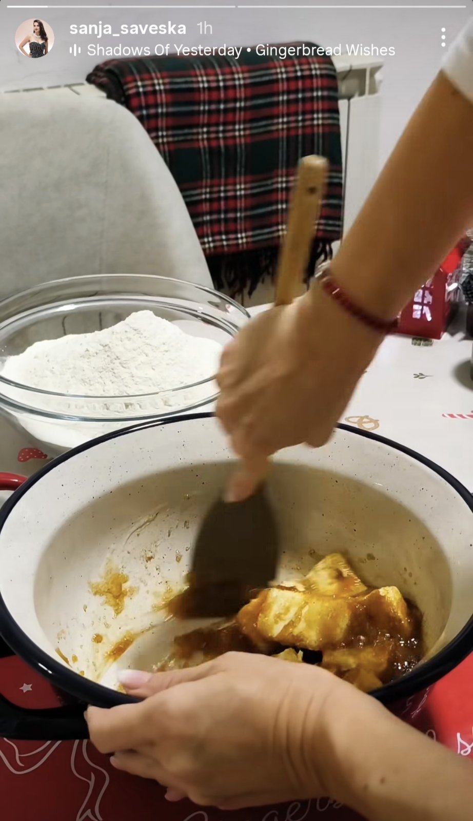 Имено, Сања месеше новогодишни колачи, а тоа го покажа на своите профили на социјалните мрежи.