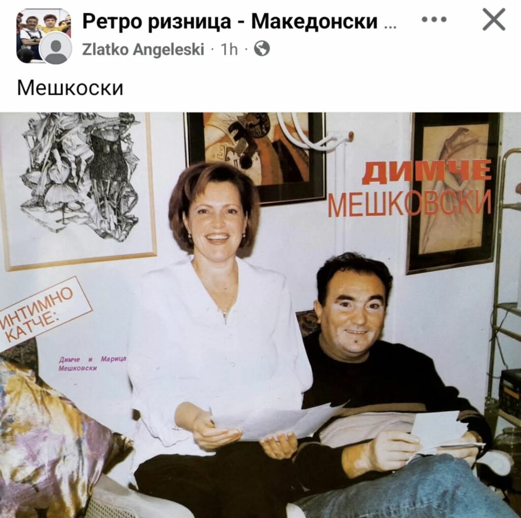 На фесјбук-страницата „Ретро ризница“ се појави ретка фотографија од Димче Мешковски со неговата сопруга Марица. Во многу прилики, Мешковски изјавуваше делка таа била неговата најголема поддршка и во добро и во лошо.