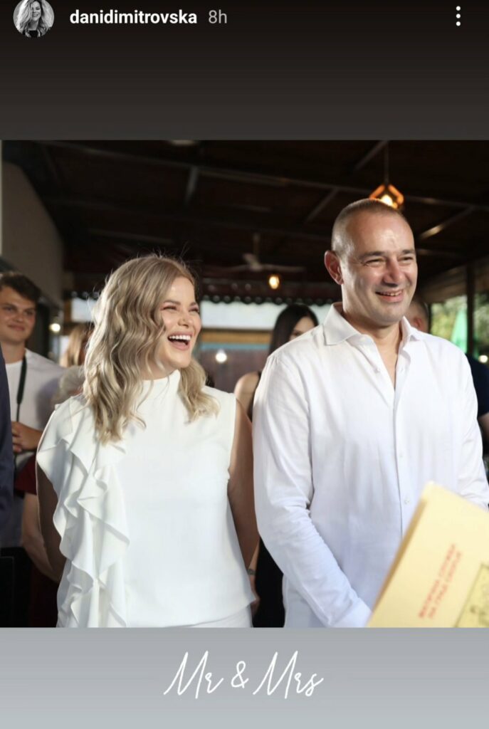 Убави вести на социјалните мрежи сподели Дани Димитровска, уникатната поп-рок пејачка која е на сцената 25 години. Дани се омажи за својот долгогодишен партнер, поранешниот кошаркар Весел со кого живее.