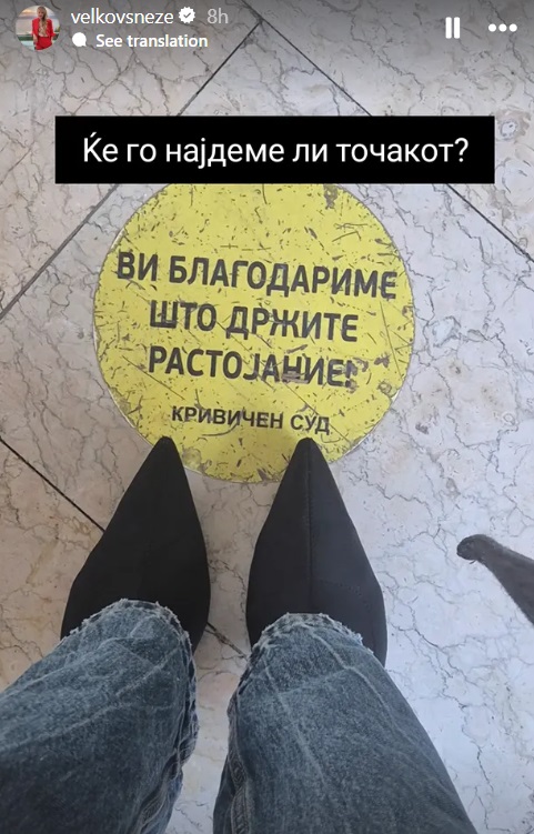 Снеже објави инстаграм-приказна од Кривичен суд надевајќи се дека правдата ќе биде задоволена и кусо објасни: „Ќе го најдеме ли точакот?“