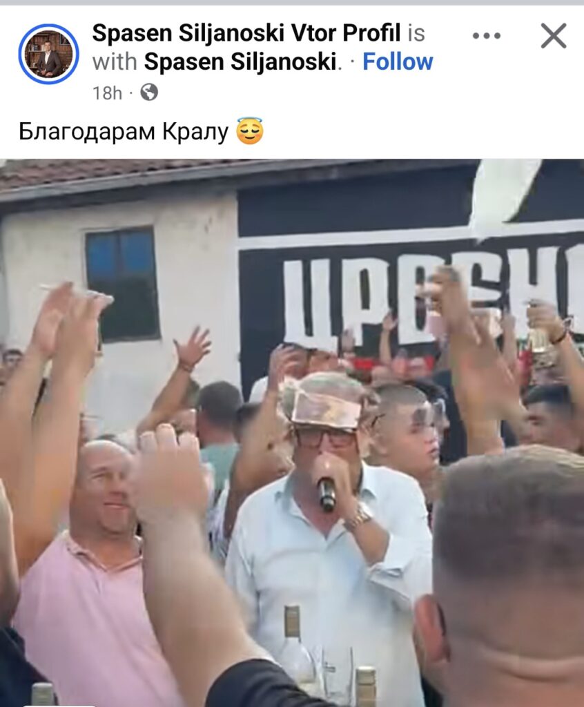 „Благодарам кралу“, напиша Спасен, а на видеото и на сликите кои и Ангел Џамбаз ги објавил на неговиот Фејсбук профил е целиот облепен со пари, и очигледно е дека песните на Спасен му носат добар бакшиш на пејачот од Тиквешијата.