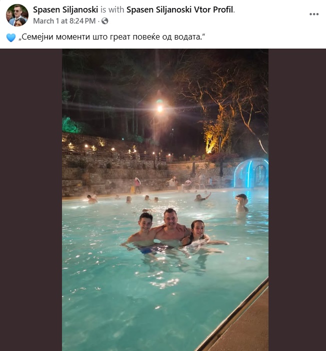 Спасен Силјановски ужива на зимскиот семен одмор со своите најмили. Фолк-пејачот објави слика со своите деца во топол базен на отворено и напиша: „Семејни моменти што греат повеќе од водата“.