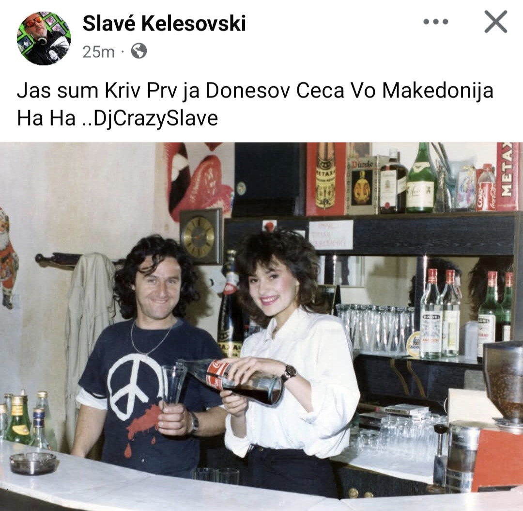 Тој објави постара фотографија од него и од Цеца која е од 1980-тите години и напиша: „Јас сум виновен, прв ја донесов Цеца во Македонија, хахаха“.