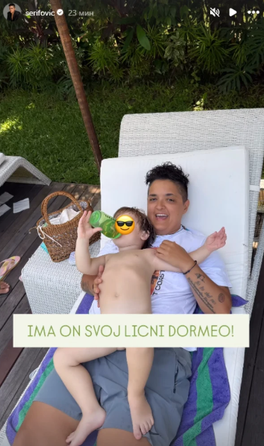 Имено, пејачката и Марио се сликале на плажа додека уживаат под палмите во сенка. Малиот Марио лежи на својата мајка и пие вода, пејачката не ја трга насмевката од лицето.