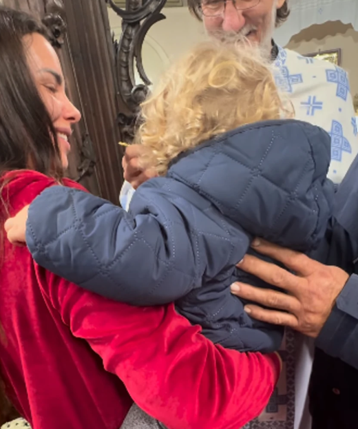 Вељко Ражнатовиќ и неговата сопруга Богдана имаат три сина, Жељко, Крстан и Исаија, кои ги воспитуваат во православен дух. Вељко сега сподели слика од светилиштето на Инстаграм на која може да се види како ги води наследниците на причест.