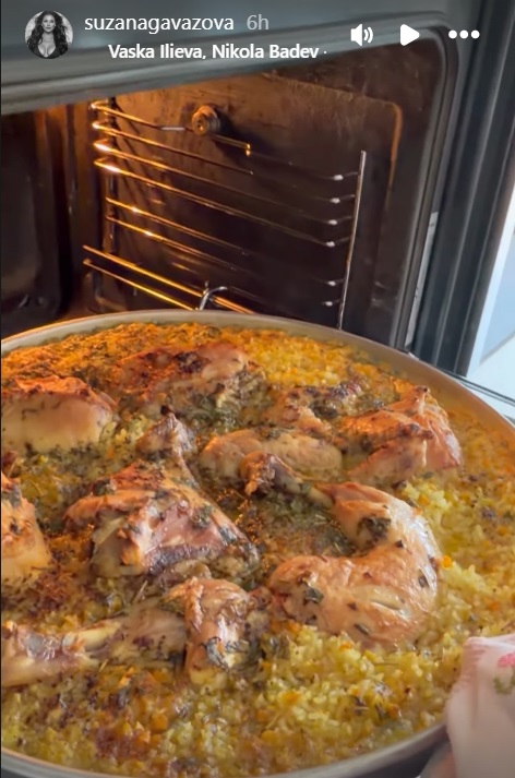 Гавазова сподели видео од својата кујна, на кое во преден план е тавче со вкусно подготвен ориз со пилешко, тазе извадено од рерна. Специјалитетот, кој е еден од омилените на македонските трпези, изгледа примамливо.