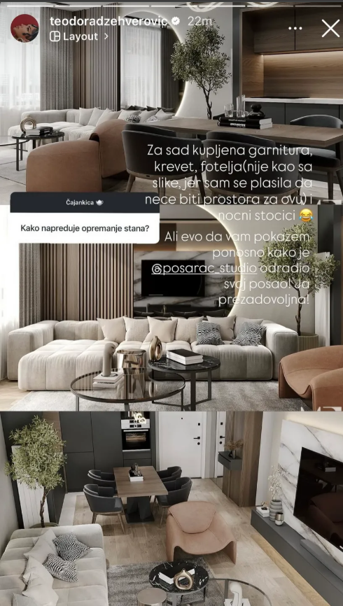 Инаку, пејачката неодамна купи пентхаус во српската престолнина за кој платила дури 400.000 евра. Теодора наводно издвоила 200.000 евра за уредување на станот, бидејќи сака сè да биде по најнова мода.