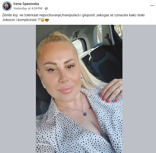 „Жените кој не толерираат непочитување, манипулации и глупости, секогаш се означени како тешки токсични и комплицирани ??“, праша пејачката.