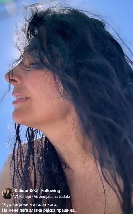 Калиопи сподели опуштена слика од плажа, без шминка и со мокра коса, како ужива во последните денови од летото.