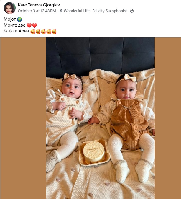 -Мојот свет. Моите две срца. Катја и Арија“, напиша Кате и доби многу убави коментари од пријателите под сликата која е од трети октомври, но таа уште добива коментари и пофални зборови.