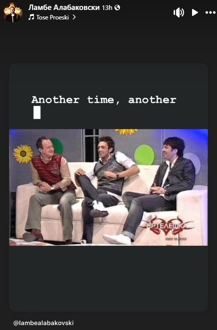 Ламбе вчера исто така сподели негова фотографија со Тоше Проески и со Ѓоко Танески, од едно нивно гостување во емисијата „Вртелешка“ пред да загине Тоше, по повод 18 години од смртта на нашата музичка легенда.