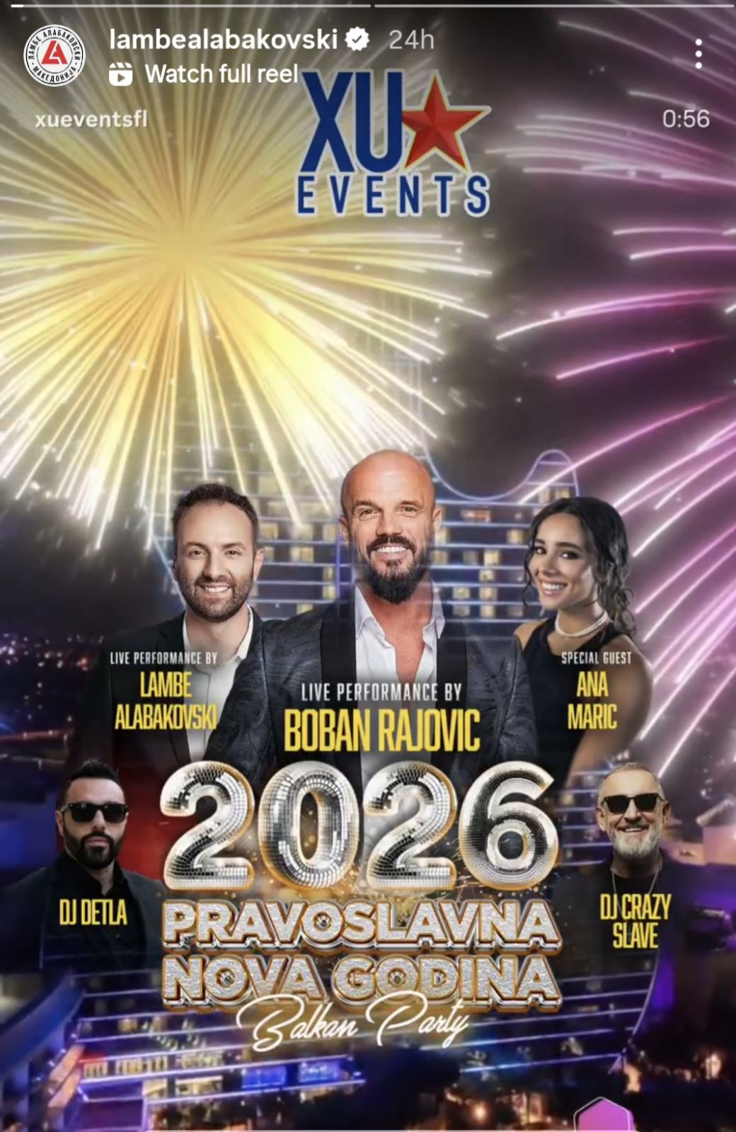 Пејачот на својот инстаграм-профил објави дека за Стара Нова година ќе пее во Америка, во хотелот „Хард рок“ во државата Флорида, со уште неколку музичари од Балканот на 13 ноември.