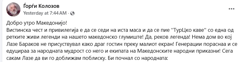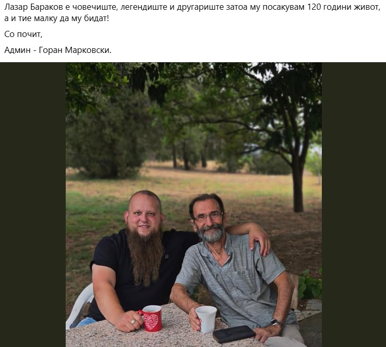 А, Лазар Бараков, на својот фејсбук-профил напишал:
