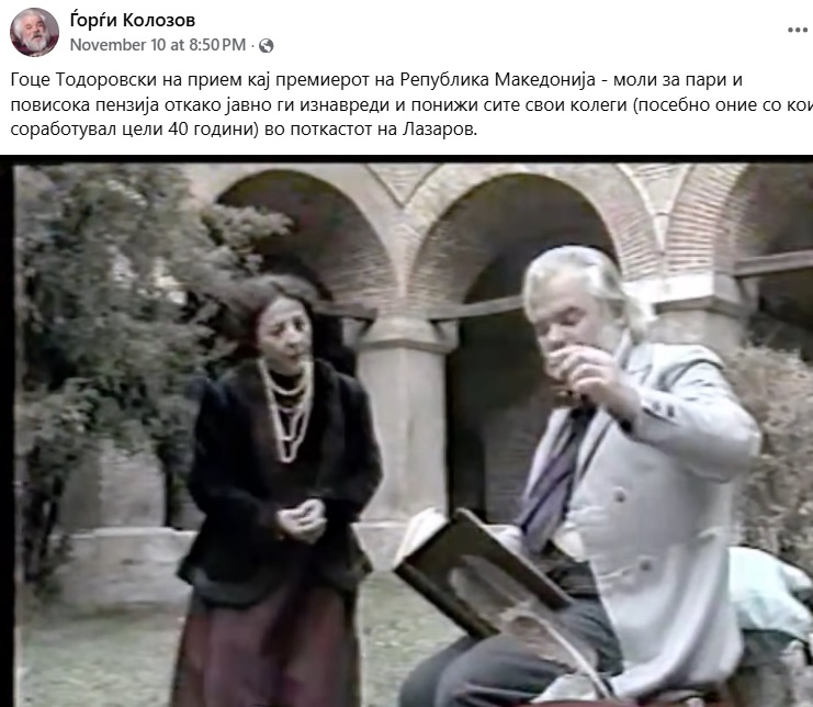 На фејсбук-страницата која го чува споменот на Ѓорѓи Колозов, а чиј админ е Горан Марковски кој е голем обожавател на сите актери од Македонските народни приказни е поставена фотографија од него и од Лазар Бараков до која пишува: