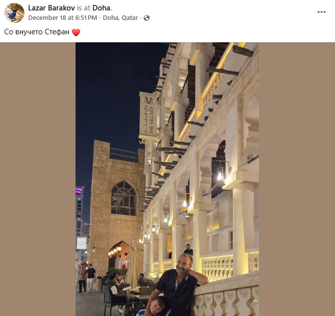 Бараков е во Доха, во Катар и до сликата напиша: „Со внучето Стефан“. Актерот кој се прослави во „Македонски народни приказни“ е татко на три деца со кои особено се гордее, како и тие со него. Она што можеби е малку познато, е тоа дека неговите деца, Македонка, Викторија и најмалиот Александар Бараков имаа улоги во приказните уште од мали.