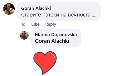 „Старите патеки на вечноста“, напишал до објавата Горан Алачки, а Марина Дојчиновска му вратила со коментар, емотикон срце.