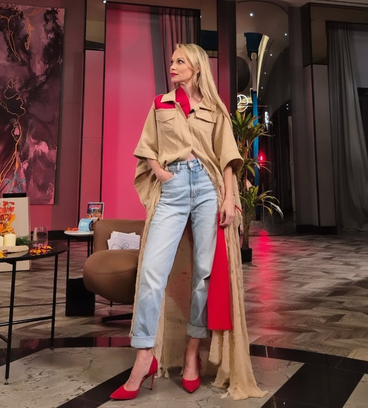 Облечена во уникатна креација со црвени детали, Снеже Велков сподели уште една интересна приказна во која секоја жена може да се пронајде: