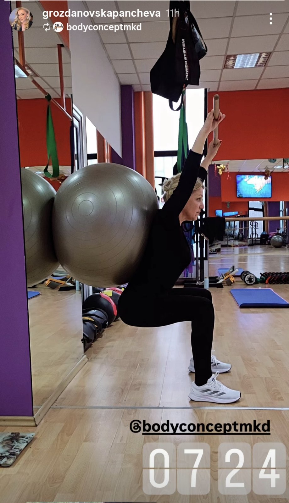 Убавата пејачка, сопругата на легендата Дарко Панчев вежба пилатес речиси секое утро, а сликата која ја сподлеила е сликана во 7.24 наутро.