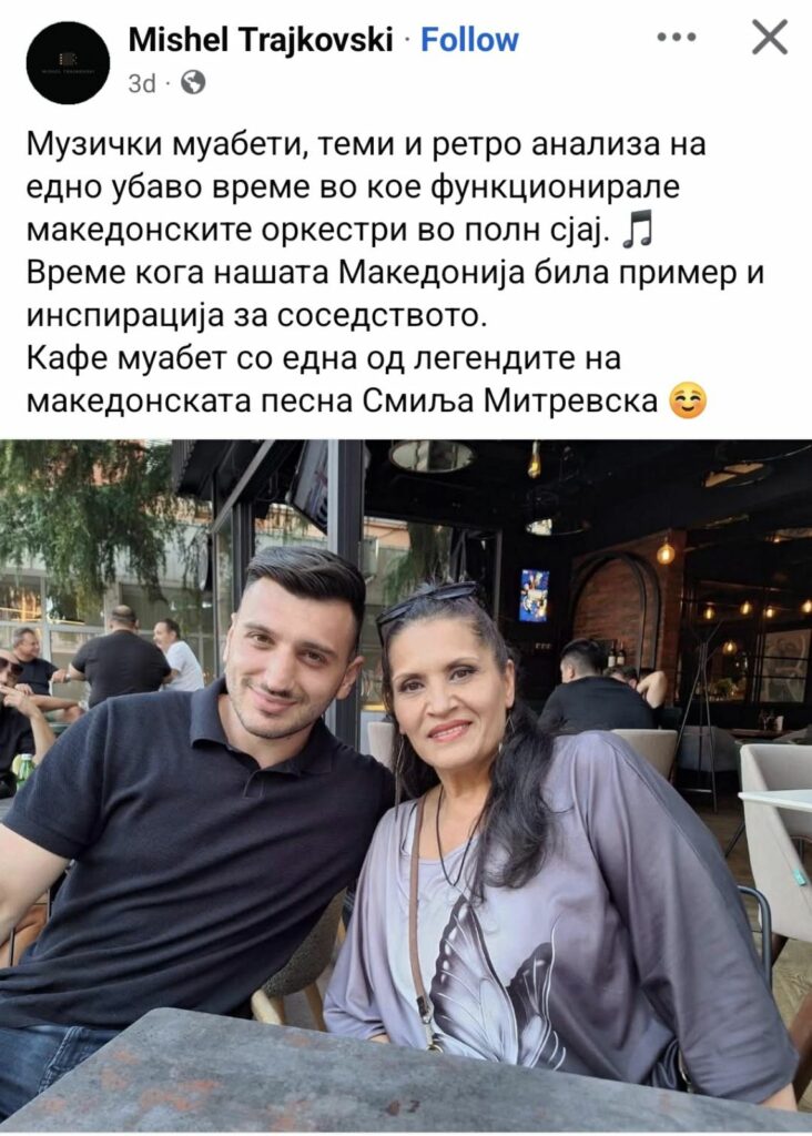А слика од Смиља објави хармоникашот Мишел Трајковски кој на својот Фејбук профил напиша: „Музички муабети, теми и ретро анализа на едно убаво време во кое функционирале македонските оркестри во полн сјај. Време кога нашата Македонија била пример и инспирација за соседството.