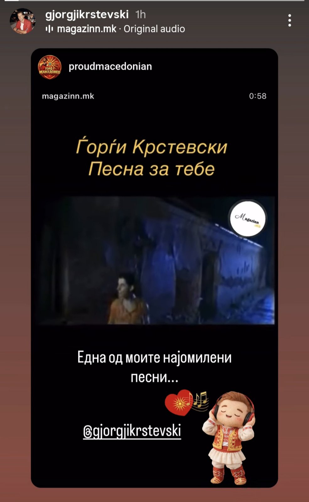 „Една од моите најомилени песни“, напиша тој на својата инстаграм-приказна.