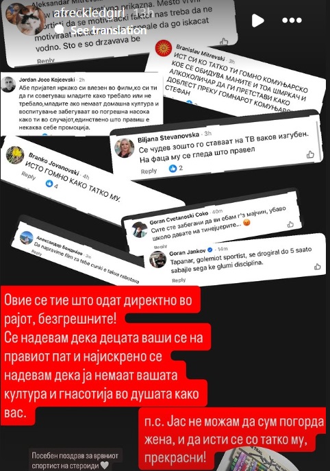 Познатиот актер Тони Михајловски е исто така мета на лоши коментари и навреди.