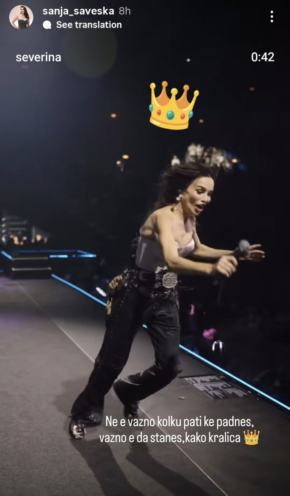 Можеше да биде прилично грд пад, но за среќа сè помина без проблеми кога Северина се сопна и падна за време на концертot во распродадената Aрена додека ја изведуваше песната „Твојата прва девојка“.