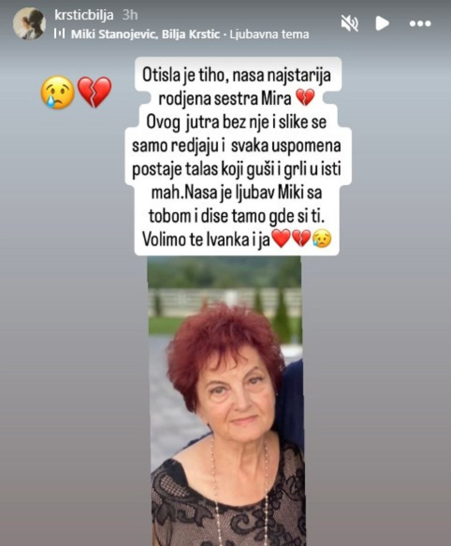 – Нашата љубов, Мики, е со тебе и дише таму каде што си ти. Иванка и јас те сакаме – напиша Биља и додаде неколку емотикони со скршено срце.