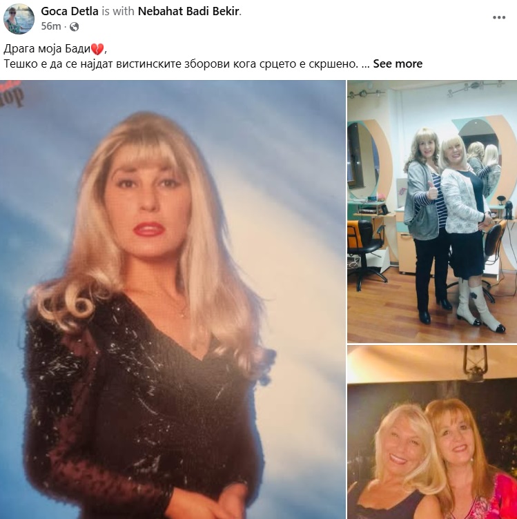 Почивај во мир, вечна барбико. Нека твојата убавина блеска сега како најсјајна sвезда и нека небото ти ги отвори вратите со истата чистота со која ти ги отвораше срцата кон луѓето. Засекогаш ќе бидеш дел од сите што те сакавм“, нашиша пријателката на Бади Бекир.