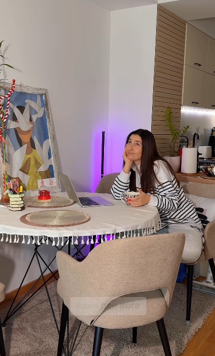 Си најдов мир, олеснување. Пополека почнав да создавам простор каде не треба да брзам, не треба да глумам. Овде уживам во своето кафе, во своите книги. Овде не правам ништо, а правам сè што ме исполнува. Си создадов катче кое е толку многу слатко, удобно, топло, што многу често немам ни потреба да го напуштам, искрено“, рече Јелена во видеото на Инстаграм.
