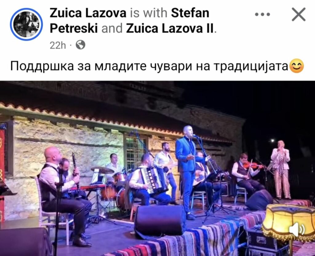 Зуица како горда мајка објавила слика од својот син, како пее македонски традиционални песни со народен оркестар, и напишала: Поддршка за младите чувари на традицијата. На сликата се гледа и дека Стефан навистина наликува на својот татко Наум кога беше помлад.
