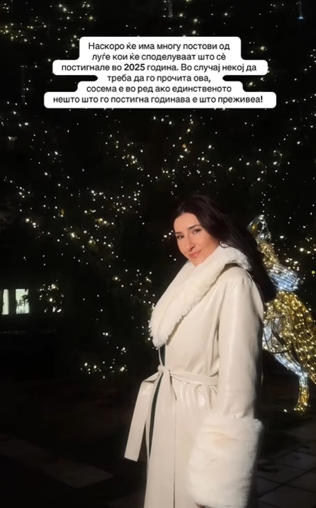 – Наскоро ќе има многу постови од луѓе кои ќе споделуваат што сѐ постигнале во 2025 година. Во случај некој да треба да го прочита ова, сосема е во ред ако единственото нешто што постигнав годинава е што преживеа – напиша таа на Инстаграм.
