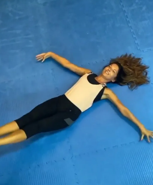 – За мене, ова е најдобриот почеток на денот. Ако не сте знаеле, еспресо кафето го забрзува процесот на согорување на мастите за време на аеробните вежби. Пробајте го – напишала таа на Инстаграм, а по вежбите користи ергономски масажер со ролер.