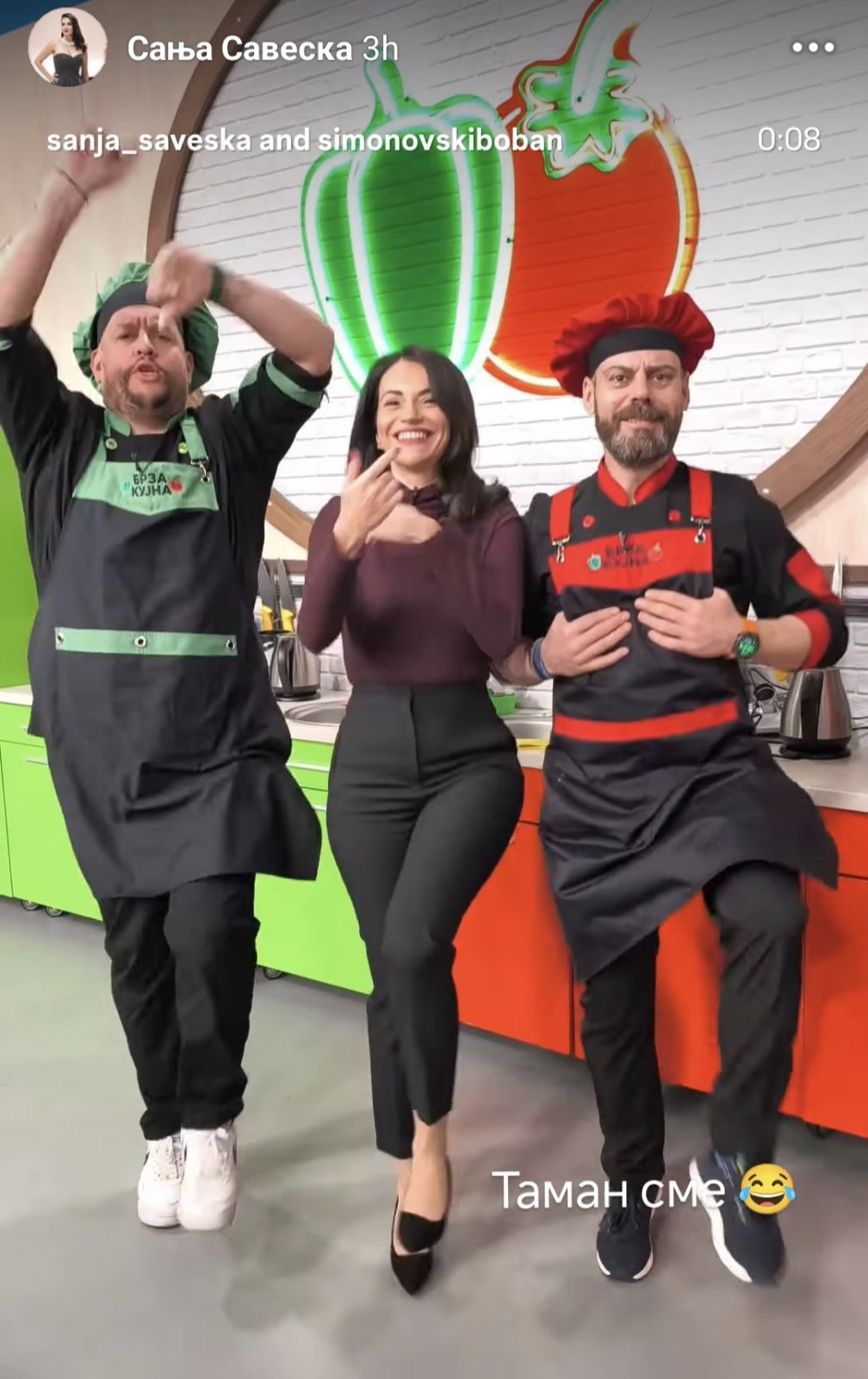 Откако шеф Боби по повредата на ногата пак се врати во студиото и заедно со шеф Никола подготвува вкусни специјалитети, Сања објави видео под кое напиша: „И по големиот број на прашања како е шеф Боби, еве го одговорот.“