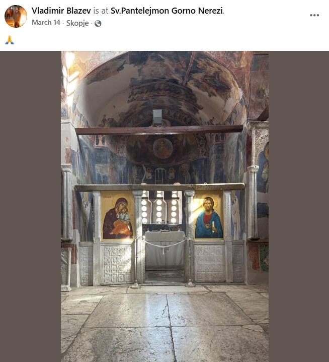 Тој објавил слика од манастирот Свети Пантелејмон во скопско Горно Нерези, само два дена пред пожарот во кочанската дискотека „Пулс“ во кој настрадаа повеќето членови на групата „ДНК“.