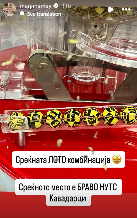Марјана Станојковска на својата инстаграм-приказна објави дека среќниот добитник е од Кавадарци и го сподели видеото од ТВ „Канал 5“ од моментот кога среќниот број 11 му донесе пари на добитникот на главната премија.
