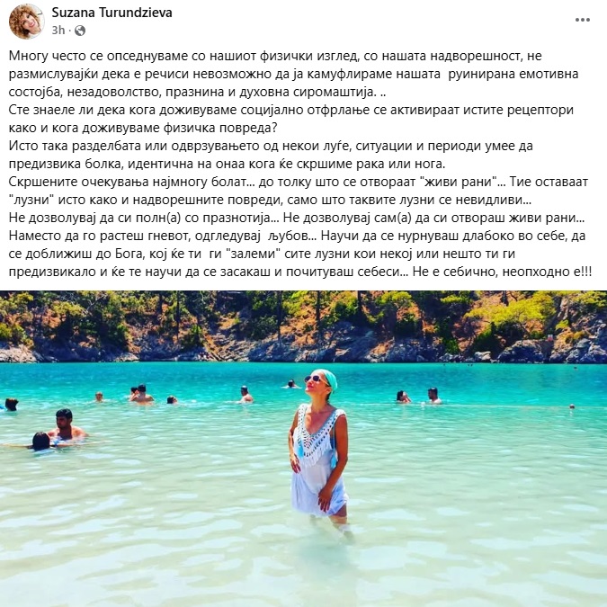 Уште една искрена исповед на Сузана Турунџиева, која ја објави откако раскажа дека ја победила лошата болест.