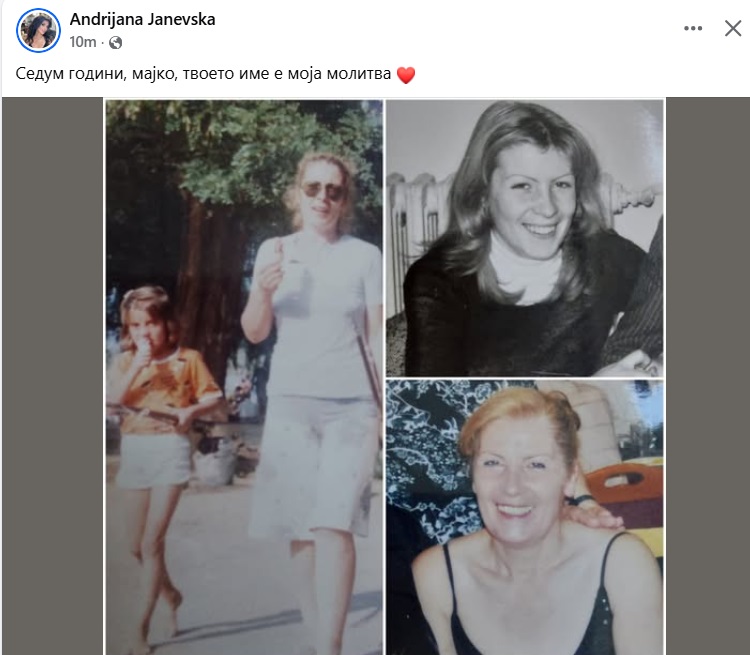 во секоја сончевина, тебе те пронаоѓам. На мајка ми Нада“, напиша Андријана пред две години за својата мајка.