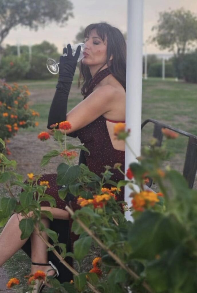 Милена Антовска- Станковска, едно од заштитните лица на „Канал 5“ ТВ има што да ја грее на ова ладно. Со отворен фустан, таа се напи и вино кое ја загреа, а таа со сликите ги загреа оние кои ја следат.