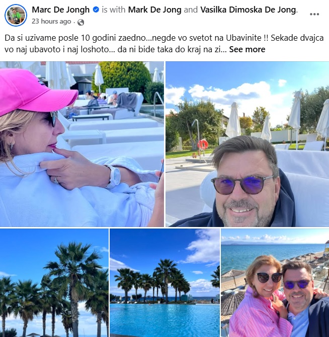 -Да си жзиваме после 10 години заедно…негде во светот на Убавините !! Секаде двајца во најубавото и најлошото… да ни биде така до крај на животот !! Те сакам мојата омилена половина“, напиша шеф Марк.