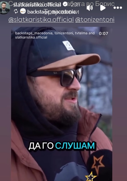 Глвно сега, последнава година кога ќе ми рече: Брат, да ти дадам еден совет, му викам: Чекај брат, не ми збори. Главно. ќе почнам да го слушам. Јас штом сум излегол да пешачам, сум тргнал на супер пат“, рече Слаткаристика.