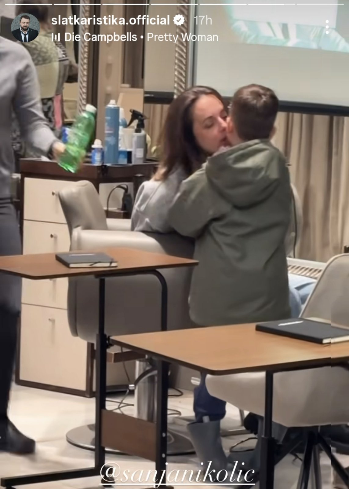 Тој прво објави видео од неговата Сања како се разубавува кај стилистот Дадар со песната „Pretty Woman“, додека тој стрпливо ја чекал, а потоа и видео како таа, откако завршила со фризерот, го бакнува нивниот син.