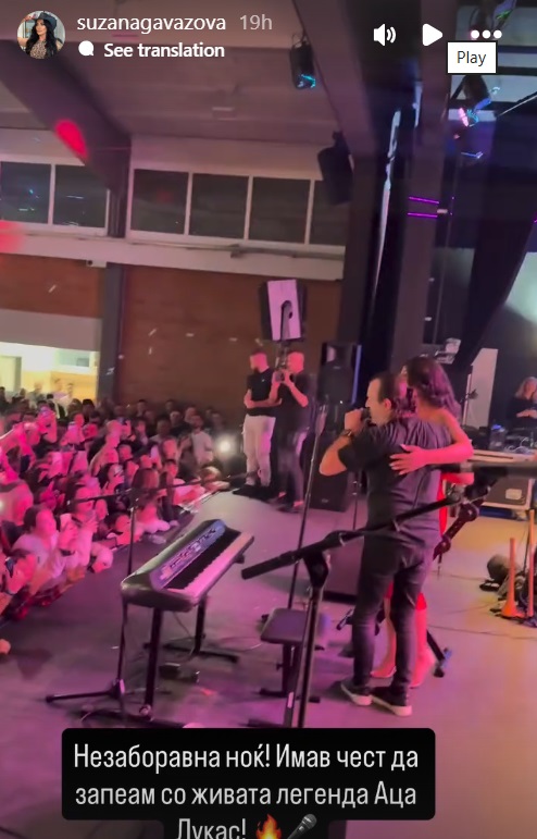 „Незаборавна ноќ. Имав чест да запеам со живата легенда Аца Лукас“, напиша на една инстаграм-приказна Гавазова. Преграни, двајцата пејачи ја пееја „Кад замиришу јорговани“ во дует.