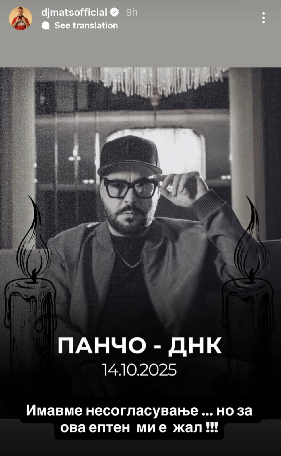 Станува збор за диџеј Мац кој на својот инстаграм-профил напиша: „Имавме несогласувања, но за ова, ептен ми е жал“.