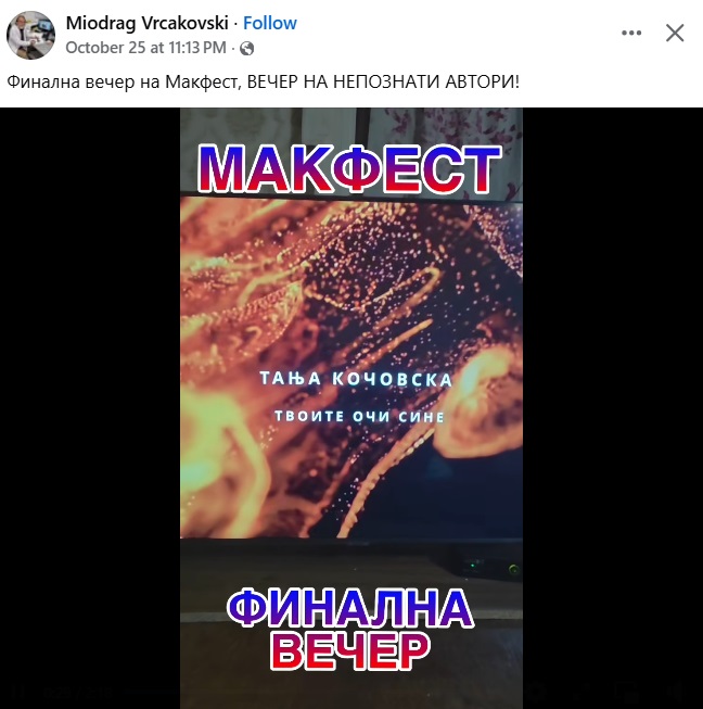 Врчаковски видеото кое го сними го нарече: „Финална вечер на Макфест, ВЕЧЕР НА НЕПОЗНАТИ АВТОРИ!“, а во него, снимајќи се со песните кои биле големи хитови изминативе 40 години, тој рече: