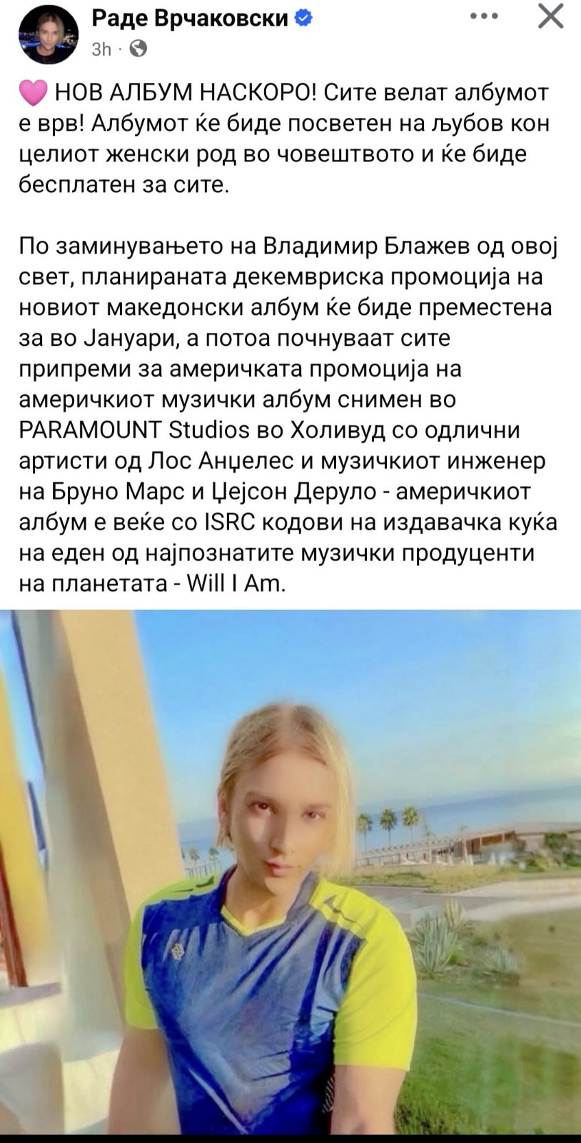 -НОВ АЛБУМ НАСКОРО! Сите велат албумот е врв! Албумот ќе биде посветен на љубов кон целиот женски род во човештвото и ќе биде бесплатен за сите.