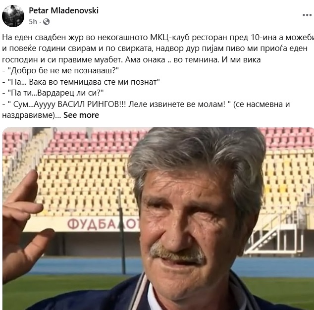 Музичарот Петар Младеновски или Пеце од „Суперхикс“ раскажа емотивна приказна за Васил Рингов, фудбалската легенда која почина вчера, по кусо боледување во Скопје.